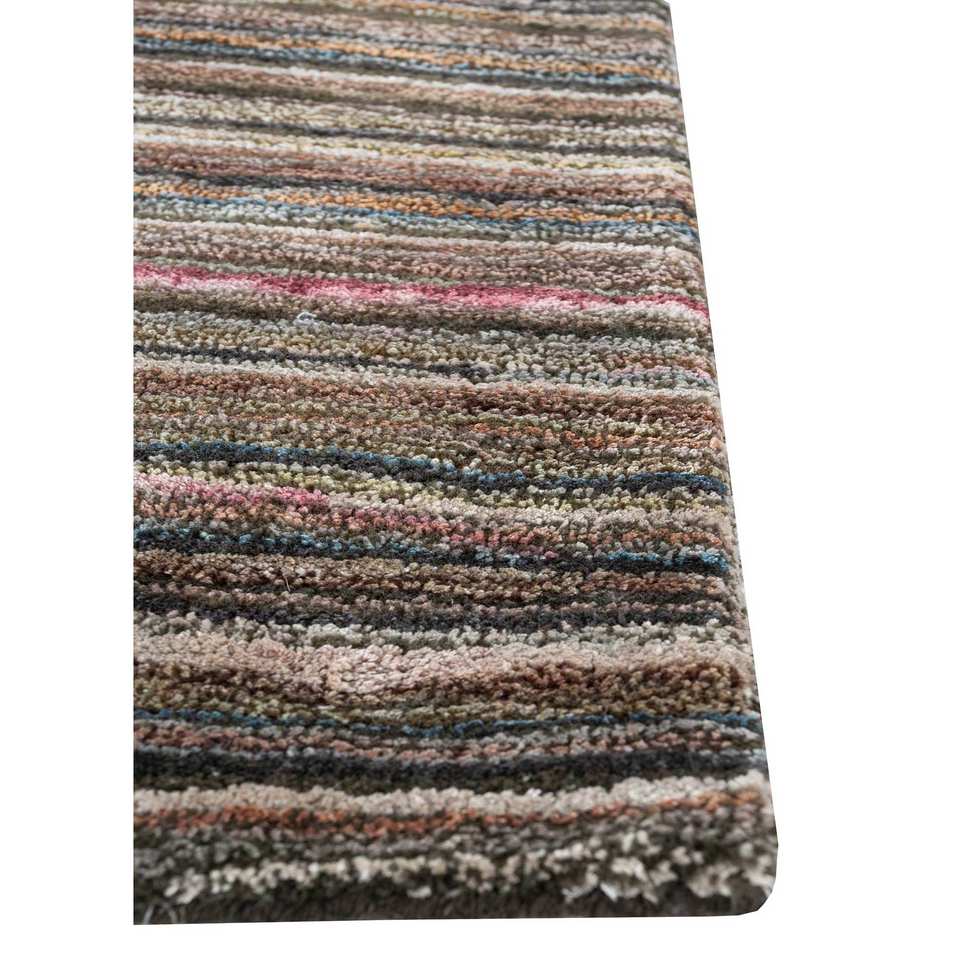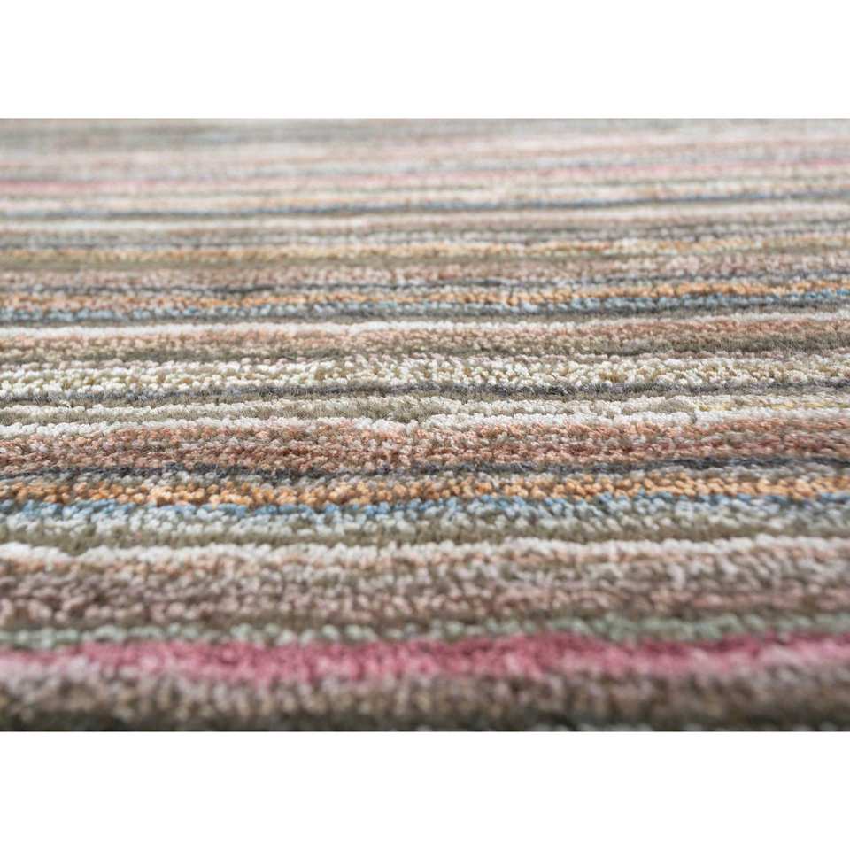 พรมทำมือ Acar สีเบจและสีน้ำตาลลายทาง ทำจากขนสัตว์และใยวิสโคส รุ่น Tra-14448 สำหรับห้องนั่งเล่นวัยรุ่นหรือทางเดิน รูปทรงสี่เหลี่ยมผืนผ้า ขนาด 5x8 ฟุต เนื้อนุ่ม