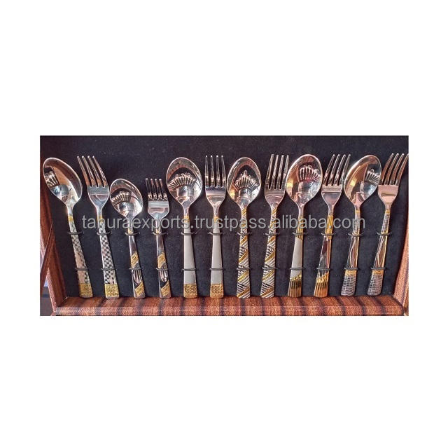 ชุดช้อนส้อมเครื่องเงินสแตนเลสสตีลสำหรับงานแต่งงานทุกขนาดทำจากโลหะเพื่อการส่งออกดีไซน์สุดหรู
