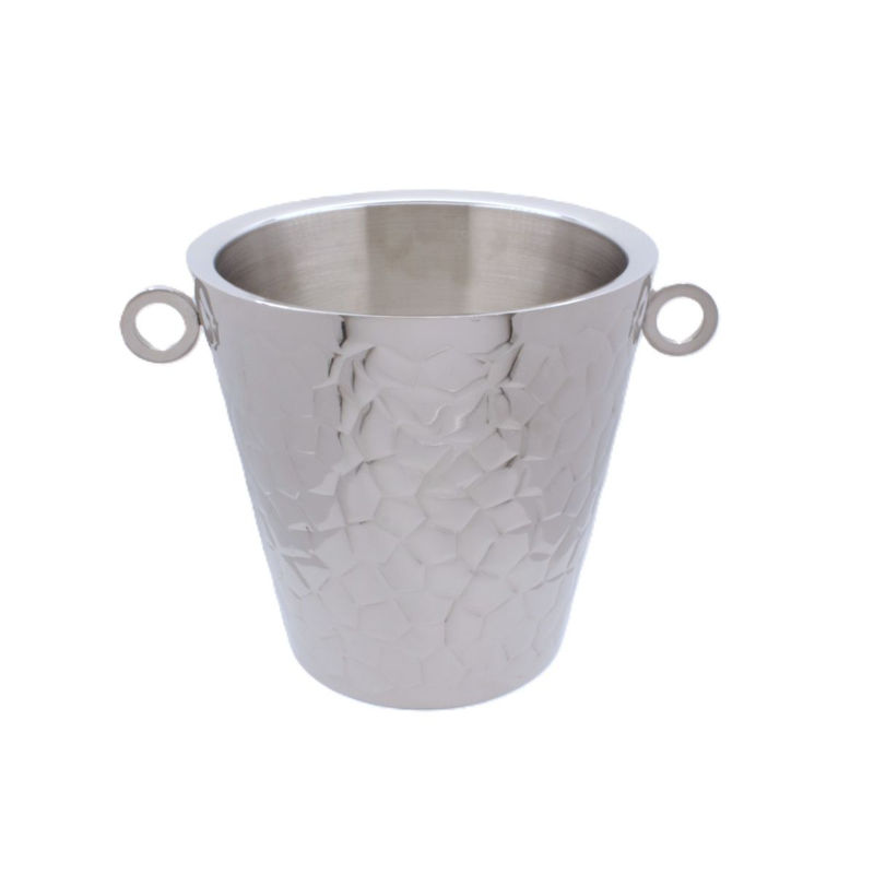 ถังน้ำแข็งโลหะหรูหราสีเงินสำหรับงานเลี้ยงที่บ้าน บาร์ หรืองานปาร์ตี้ พร้อมหูจับและฝาปิด