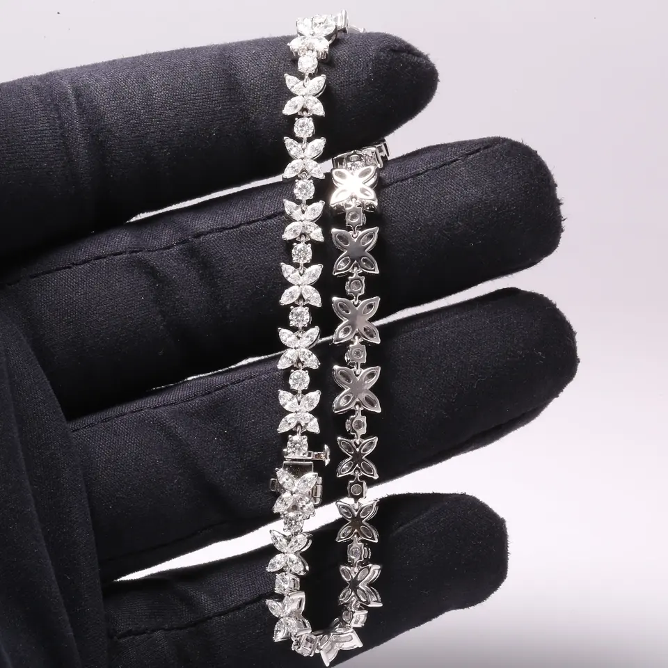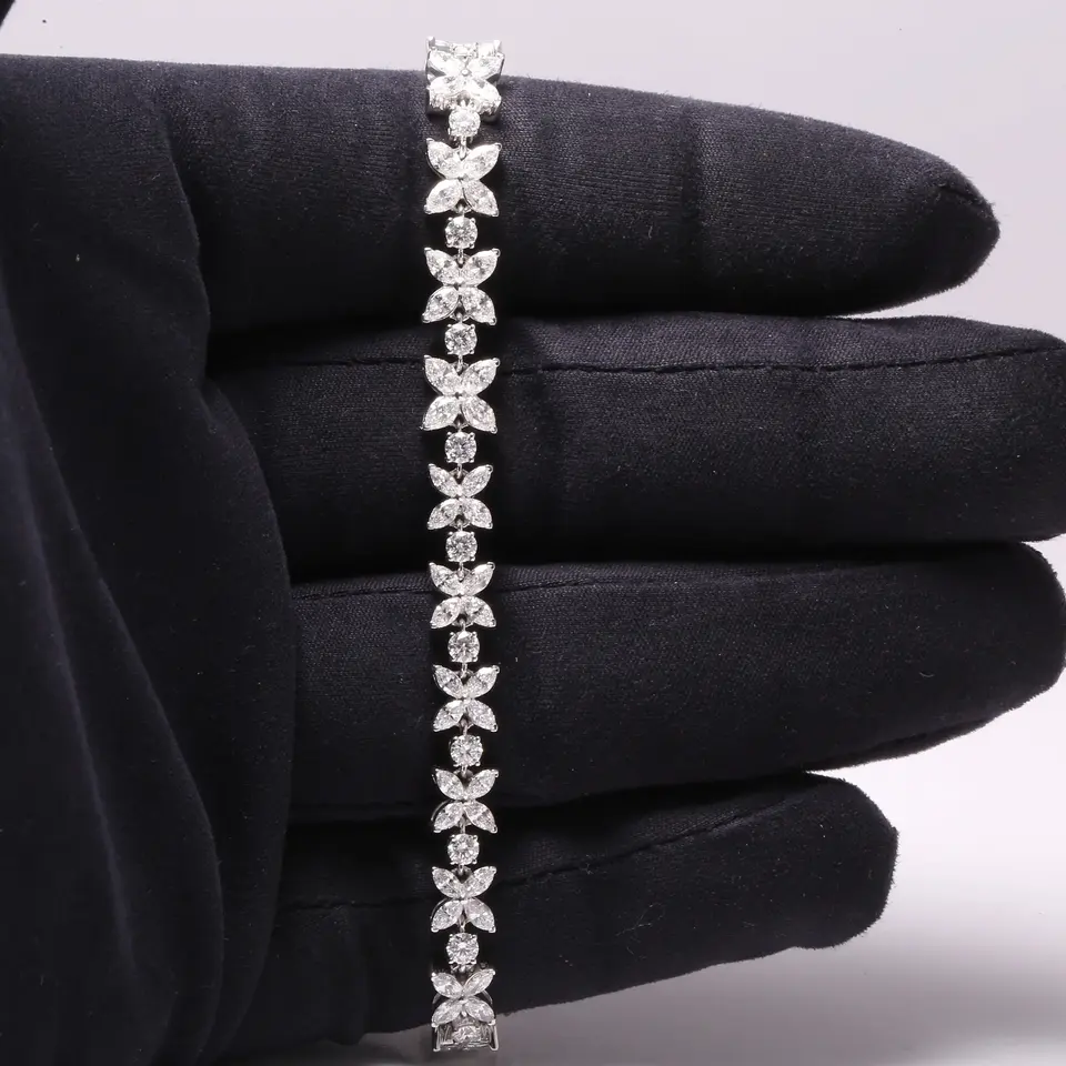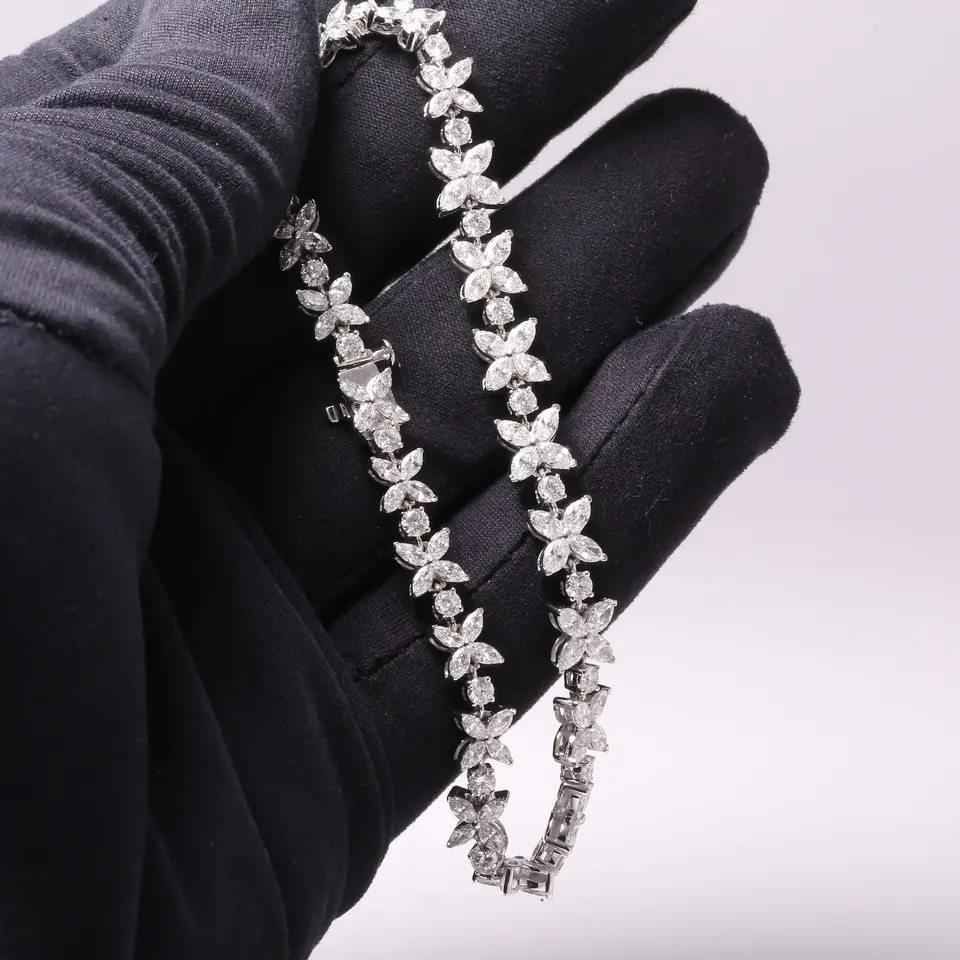 สร้อยข้อมือเงินแท้ 925 สไตล์วินเทจสำหรับผู้หญิง ประดับเพชรทรงรี เหมาะสำหรับเป็นของขวัญแต่งงาน