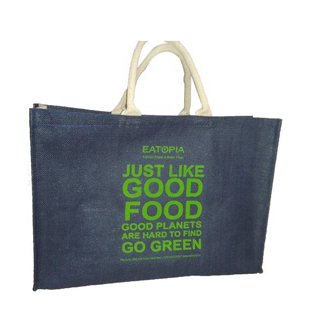 กระเป๋าผ้าใบพิมพ์โลโก้สั่งซื้อได้ตามต้องการ,ถุงช้อปปิ้งปอกระเจาธรรมชาติความจุขนาดใหญ่ทนทานทำด้วยมือ