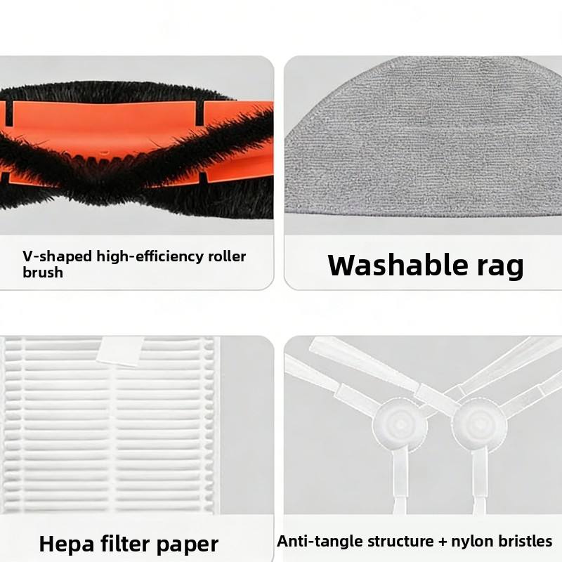 ชุดอุปกรณ์เสริมสำหรับ3C Xiaomi Mijia E10 C103 E12หุ่นยนต์ดูดฝุ่นชิ้นส่วนอะไหล่แปรงลูกกลิ้งขอบแปรงกรอง HEPA ไม้ถูพื้น