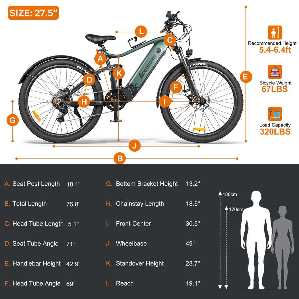 จักรยานไฟฟ้า Accolmile 2024 รุ่น Cola Bear สีเขียวดำ ขนาด 27.5/29 นิ้ว 48V 20Ah มอเตอร์ BAFANG กลาง 840Wh กำลังไฟ 750W ระยะทาง 60 กม. แบบอินทิเกรต