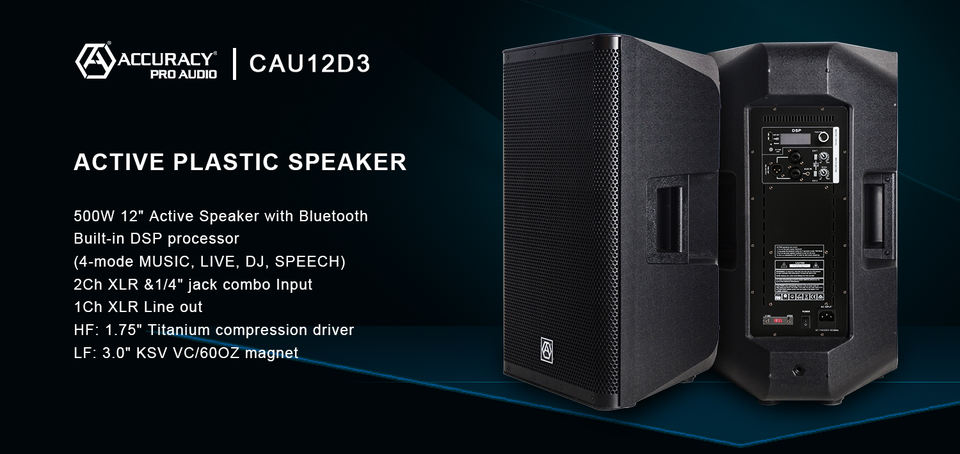 ลำโพงแอคทีฟ Accuracy Pro Audio CAU12D3 ดีไซน์ใหม่ ระดับมืออาชีพ กำลังขับ 500 วัตต์ RMS ขนาด 12 นิ้ว ระบบดิจิตอล ตัวเครื่องพลาสติก