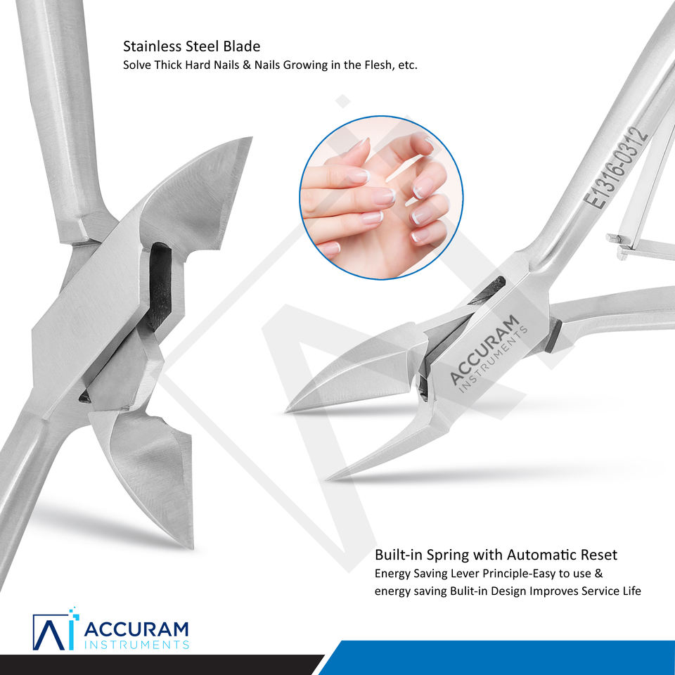 ที่ตัดเล็บเท้า Accuram Heavy Duty สำหรับเล็บหนา พร้อมที่ตัดหนังกำพร้า ใบมีดคม ทำจากสแตนเลส สำหรับงานดูแลเท้า ปากกว้าง พร้อมตัวล็อคด้านหลัง