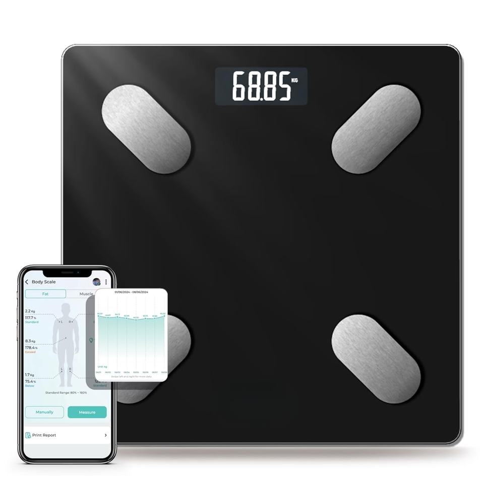 เครื่องวัดองค์ประกอบของร่างกายแบบบลูทูธในห้องน้ำวัดไขมันในร่างกายสำหรับผู้ใช้ในบ้าน
