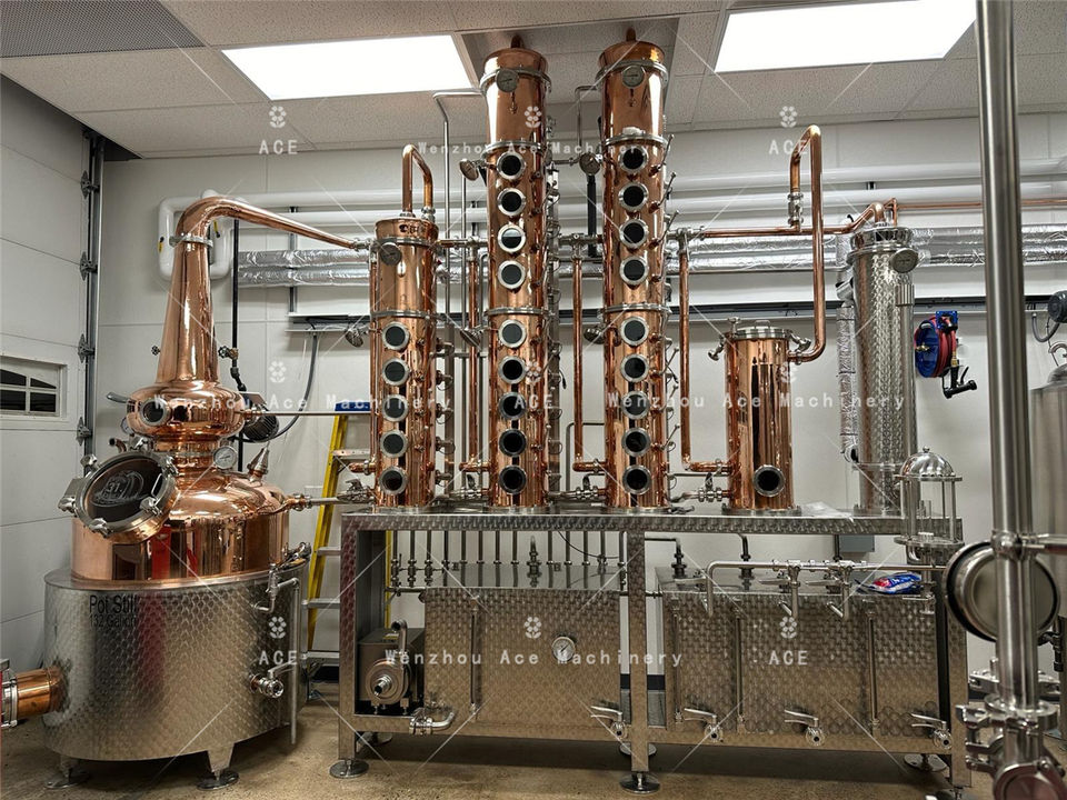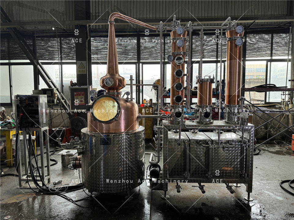 หม้อทองแดงสีแดงเงา Ace 1000L พร้อมปั๊ม, แบริ่งเครื่องยนต์, ตะกร้ากรองแบบรีฟลักซ์, แจ็คเก็ตฉนวนสแตนเลสสำหรับวิสกี้ จิน บรั่นดี