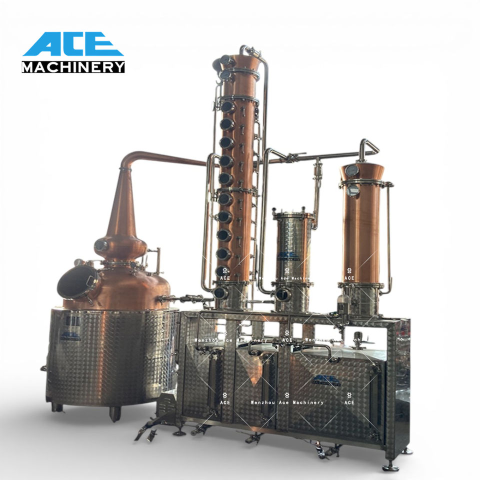 เครื่องกลั่นสุราแบบคอลัมน์ทองแดง Ace 500L 1000L สำหรับผลิตวอดก้า จิน และสุราอื่นๆ สำหรับโรงงานผลิต