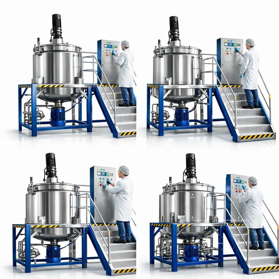 ถังผสมโฮโมจีไนเซอร์สแตนเลส500L 100L พร้อมด้วยเครื่องกวนและทำความร้อนให้กับแจ็คเก็ตแชมพูสบู่