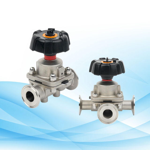 วาล์วไดอะแฟรมแบบมีที่หนีบสามทางแอคชูเอซ SMS สุขภัณฑ์สแตนเลสขนาด1.5นิ้ว