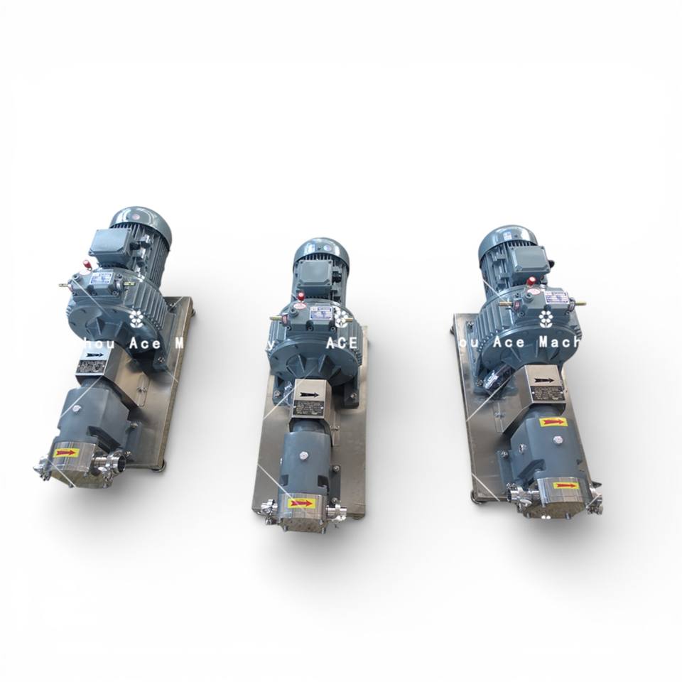 ปั๊มถ่ายโอนของเหลวแบบโรตารี่โลบปั๊ม ยี่ห้อ Ace ผลิตจากสแตนเลสและซิลิโคน พร้อมมอเตอร์ป้องกันการระเบิด