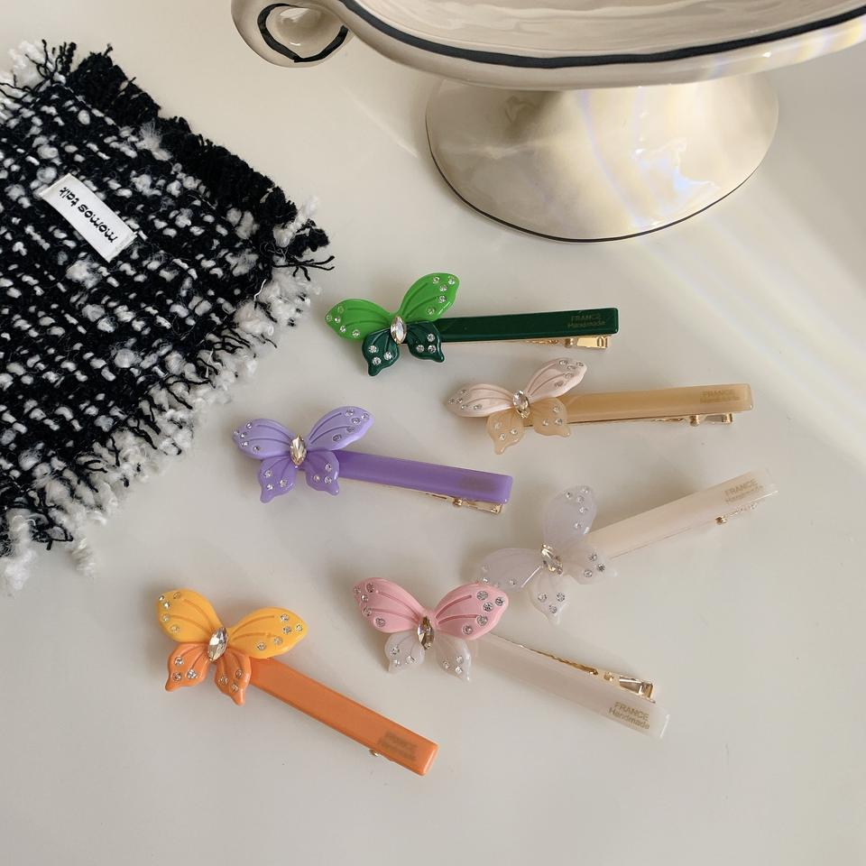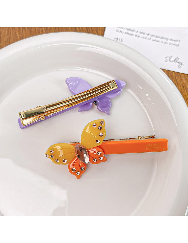 กิ๊บติดผมผีเสื้ออะซิเตทสำหรับผู้หญิง ขนาด 7.5 ซม. ประดับด้วยคริสตัลหรูหรา