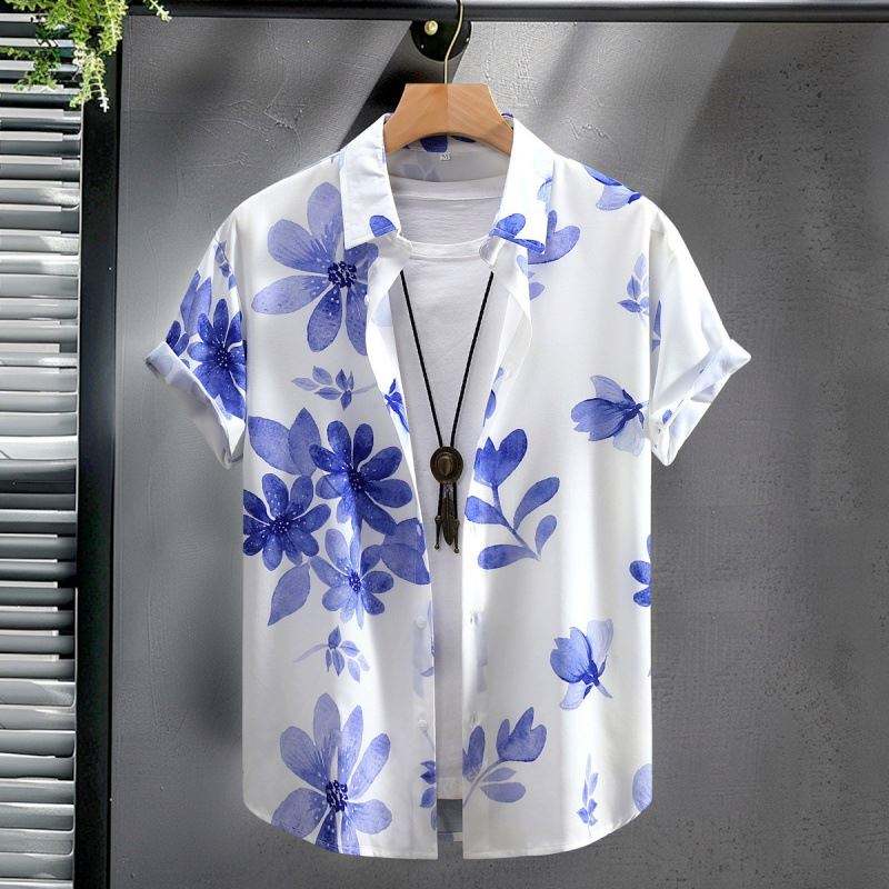 เสื้อเชิ้ตแขนสั้นสำหรับผู้ชาย2024มีสไตล์โดยไม่ต้องออกแรงพร้อมความสบายในฤดูใบไม้ผลิสี่ด้าน