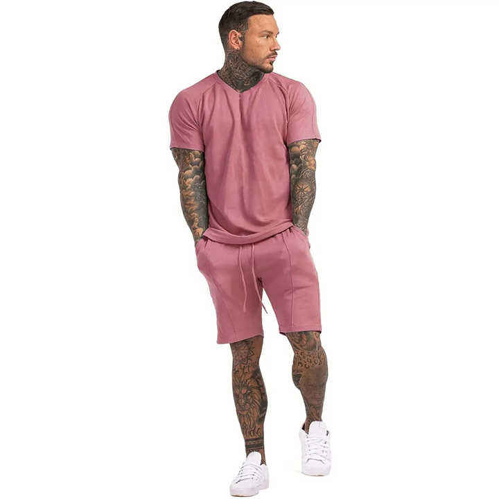 ชุดวอร์มสำหรับผู้ชายเสื้อยืดและกางเกงขาสั้นผ้าฝ้าย100% ฟอกสีติดโลโก้ได้ตามต้องการ