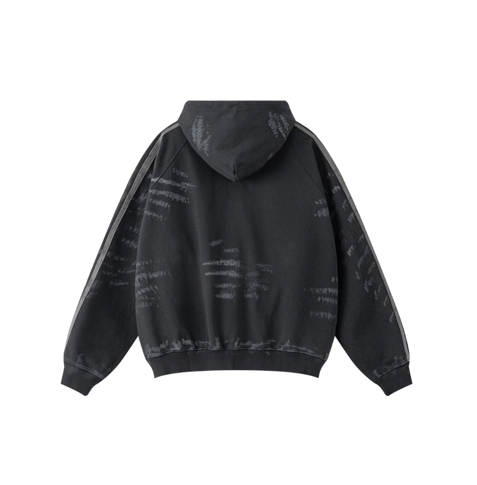 เสื้อครอปมีฮู้ดผ้าคอตตอนผสมเพชรเทียมทรงหลวม500gsm ฟอกสีได้