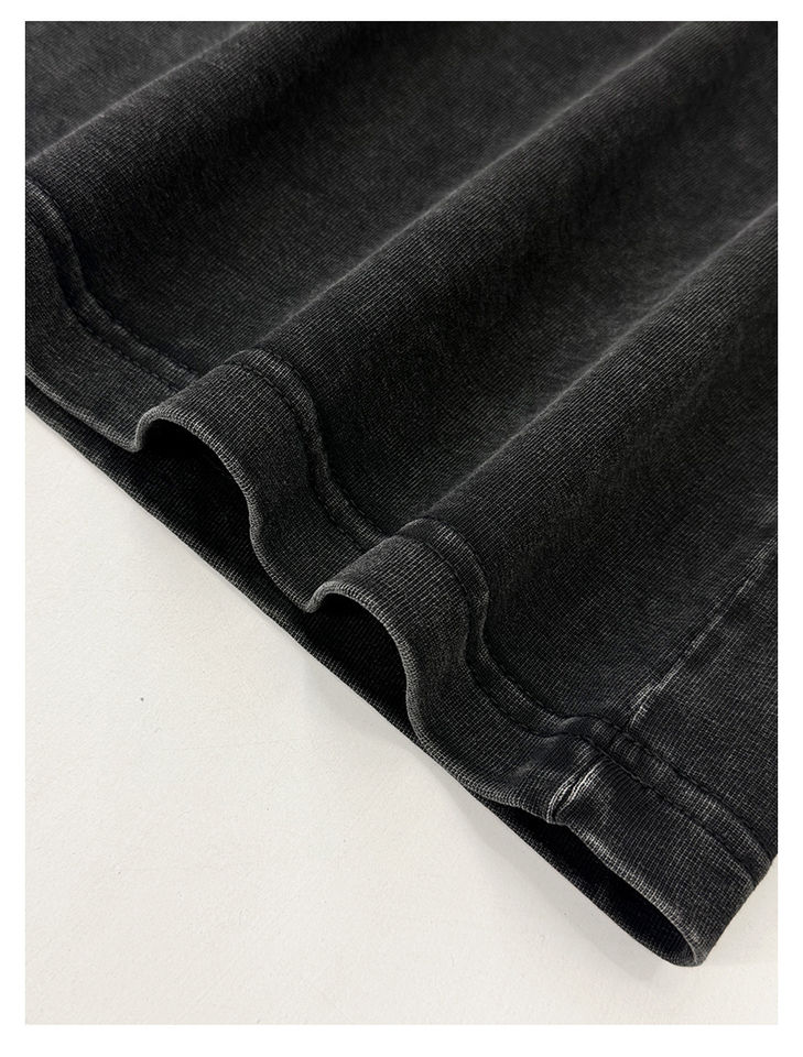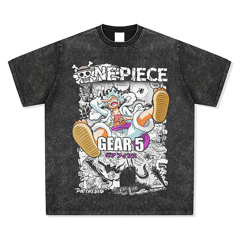 เสื้อยืดสตรีทแวร์ลายอนิเมะ พิมพ์ด้วยเทคนิค Acid Wash แบบ DTG เสื้อยืดเปล่าทรงวินเทจสีเบจฟอกสี ผ้าหนา น้ำหนักมาก สำหรับผู้ชาย