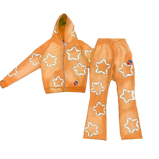 ชุดเสื้อฮู้ดผ้าคอตตอนหนาสำหรับผู้ชายฟอกสีกรดชุดเสื้อฮู้ดผ้าฝ้ายเทอร์รี่ออกแบบลายนูน3D ได้ตามต้องการ