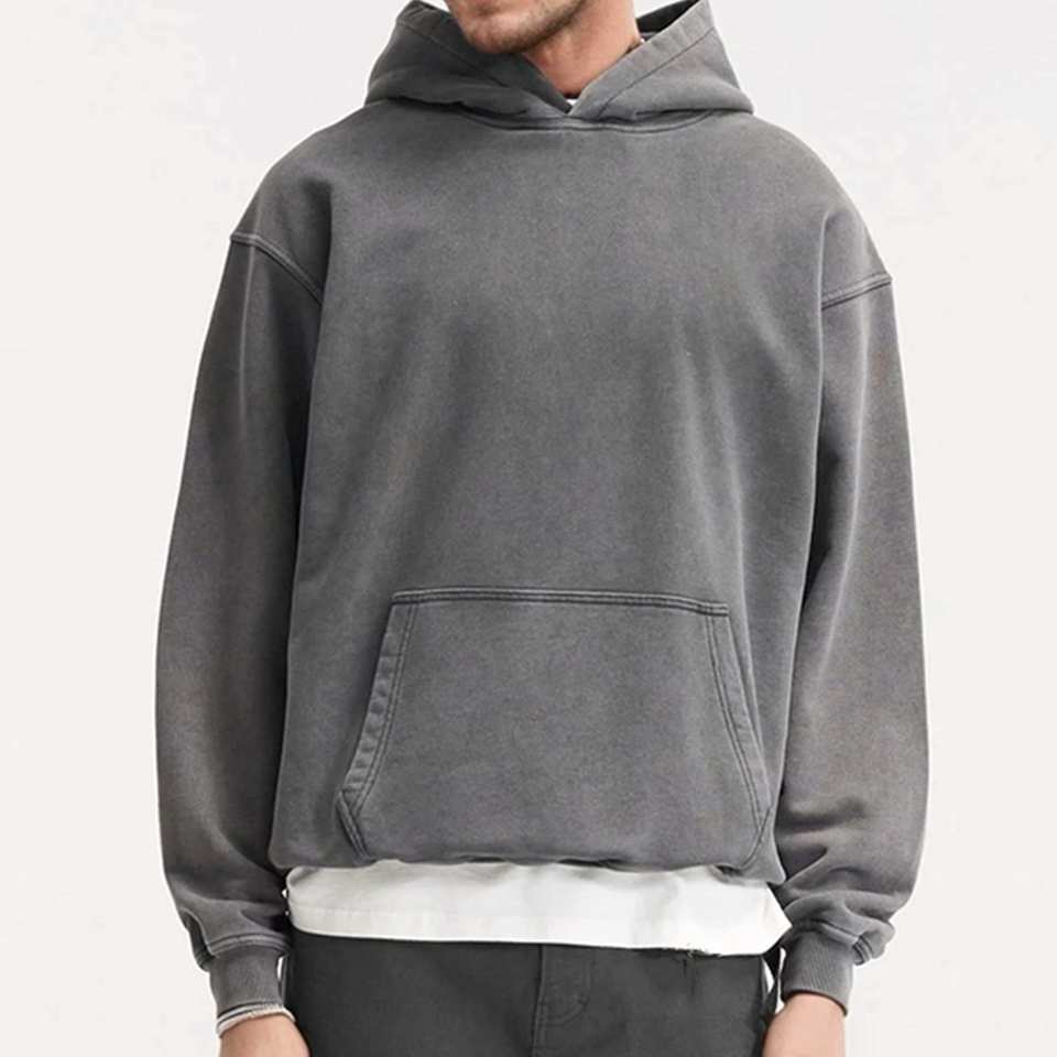 เสื้อฮู้ดดี้ผ้าคอตตอนหนานุ่มสไตล์วินเทจ ล้างสีแบบแอซิดวอช รับทำโลโก้ตามสั่ง เสื้อผ้าสตรีทแวร์ ผู้ผลิต OEM