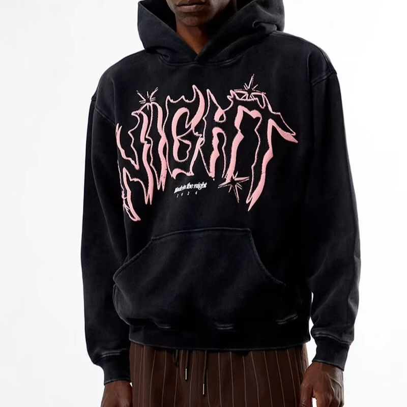เสื้อฮู้ดผ้าฝุ่นแอซิดพร้อมโลโก้ออกแบบได้ตามต้องการ