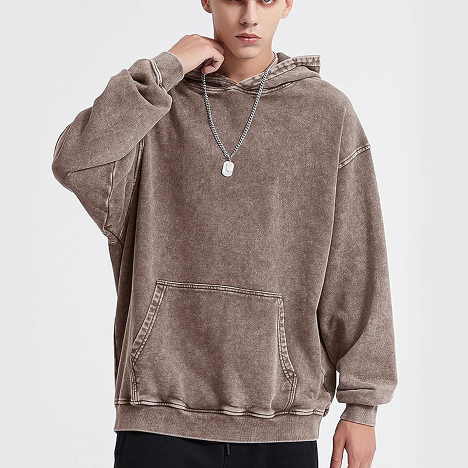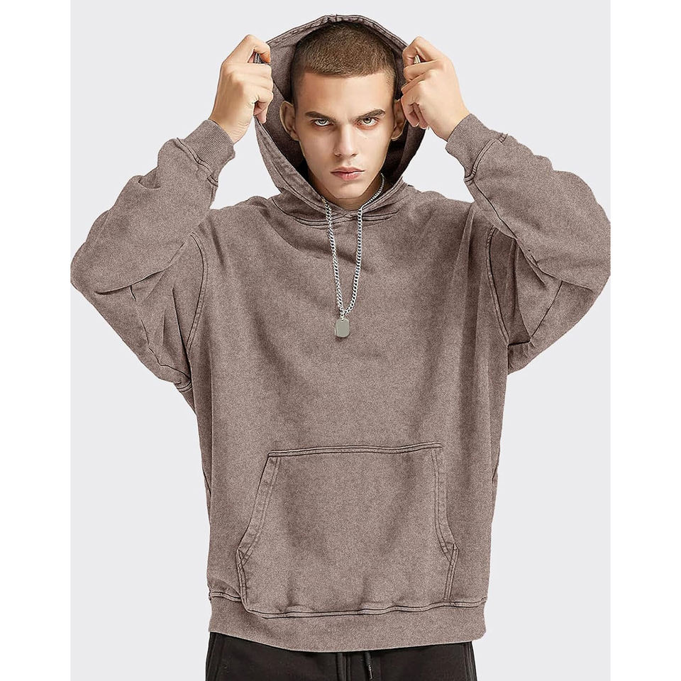 เสื้อฮู้ดดี้ฟอกสี 100% ผ้าฝ้าย ระบายอากาศได้ดีสำหรับฤดูหนาว ดีไซน์ OEM คุณภาพพรีเมียม ปรับแต่งได้ ผ้าฟลีซสำหรับผู้ชาย สวมใส่สบายๆ