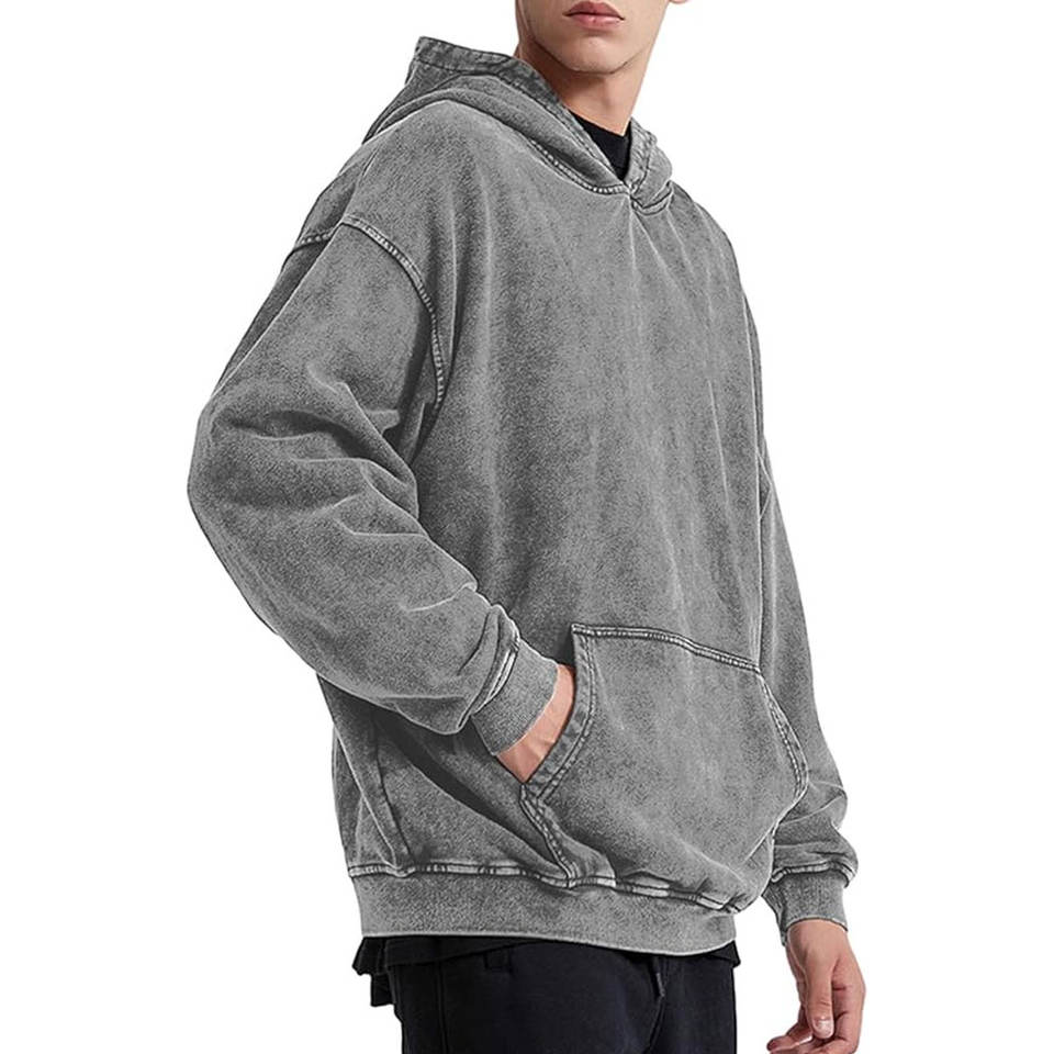 เสื้อฮู้ดผู้ชายซักกรดเสื้อสวมหัวแขนยาวมีกระเป๋าด้านหน้าพิมพ์โลโก้ได้ตามต้องการ