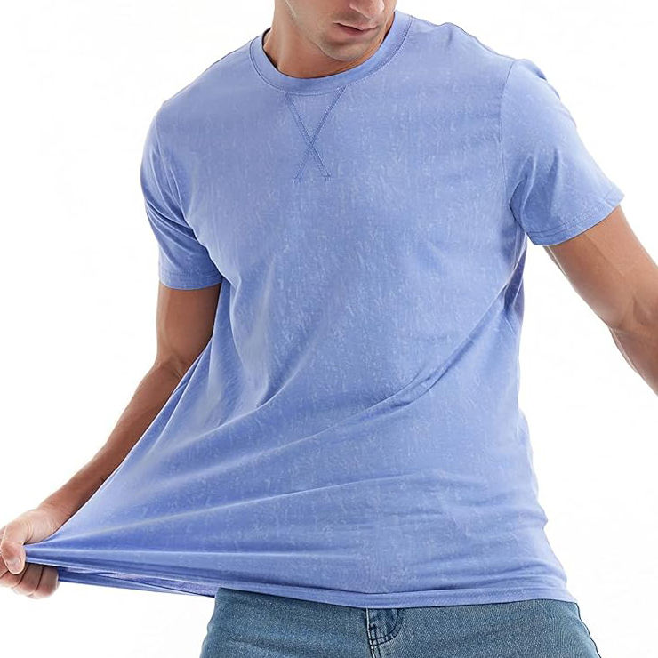 Acid WASH เสื้อยืดผู้ชาย, เสื้อยืดผ้าฝ้ายแขนสั้นน้ำหนักเบาระบายอากาศสบายสำหรับผู้ชายสวมใส่ในชีวิตประจำวัน