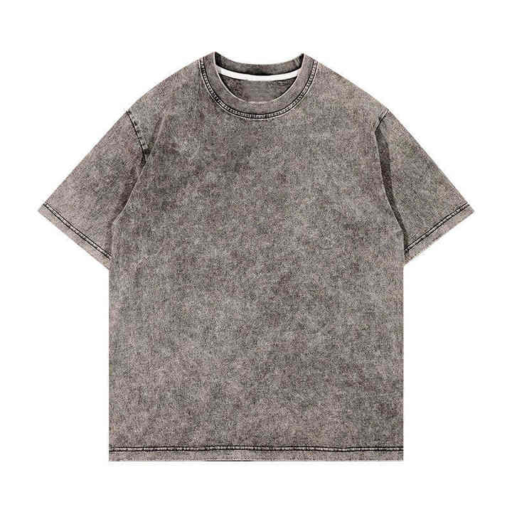 เสื้อยืดผู้ชายแบบย้อมสีเอซิด ผ้าฝ้ายใส่สบาย ดีไซน์เรโทร สวมใส่สบายๆ