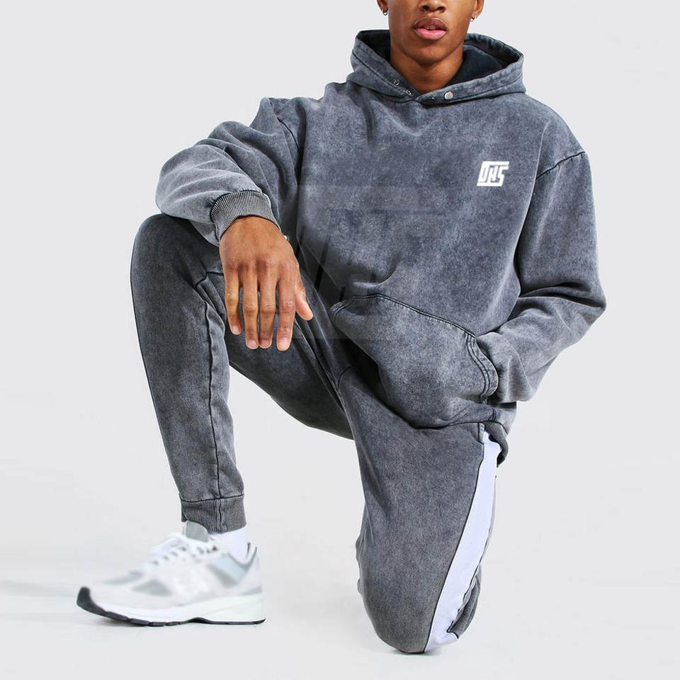 ชุดวอร์มโอเวอร์ไซส์ผู้ชายสไตล์แอซิดวอช พรีเมียมสตรีทแวร์ ผ้าฝ้าย ฮู้ดดี้ กางเกงขายาว ผลิตโดยผู้ผลิตโดยตรง