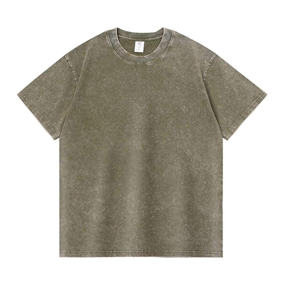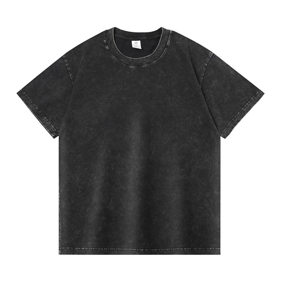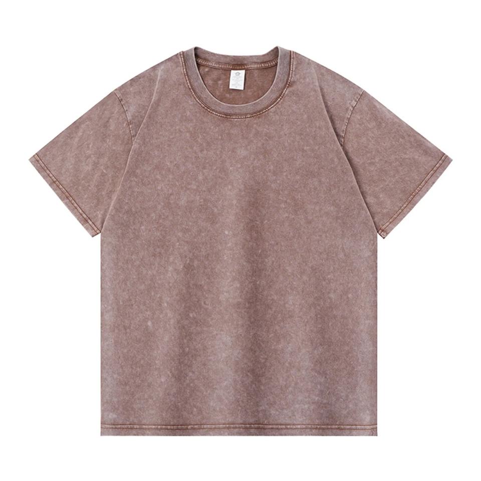 เสื้อยืดผ้าฝ้ายโอเวอร์ไซส์ลายกรดซักเสื้อยืดใส่ได้ทุกเพศแบบลำลองสวยงามเปิดไหล่ตกและดูซีดจาง