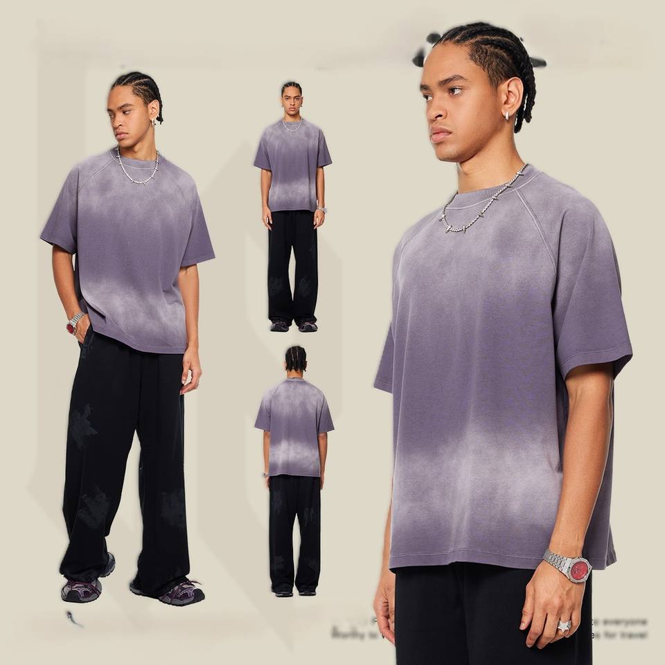 เสื้อยืดเจอร์ซีย์ผ้าโพลีเอสเตอร์/คอตตอนแบบย้อมสีเอซิด โลโก้ด้านหน้า ทรงหลวมไหล่ตก สไตล์สตรีท ผ้าไม่เป็นขุย น้ำหนัก 220 กรัม สำหรับผู้ชาย