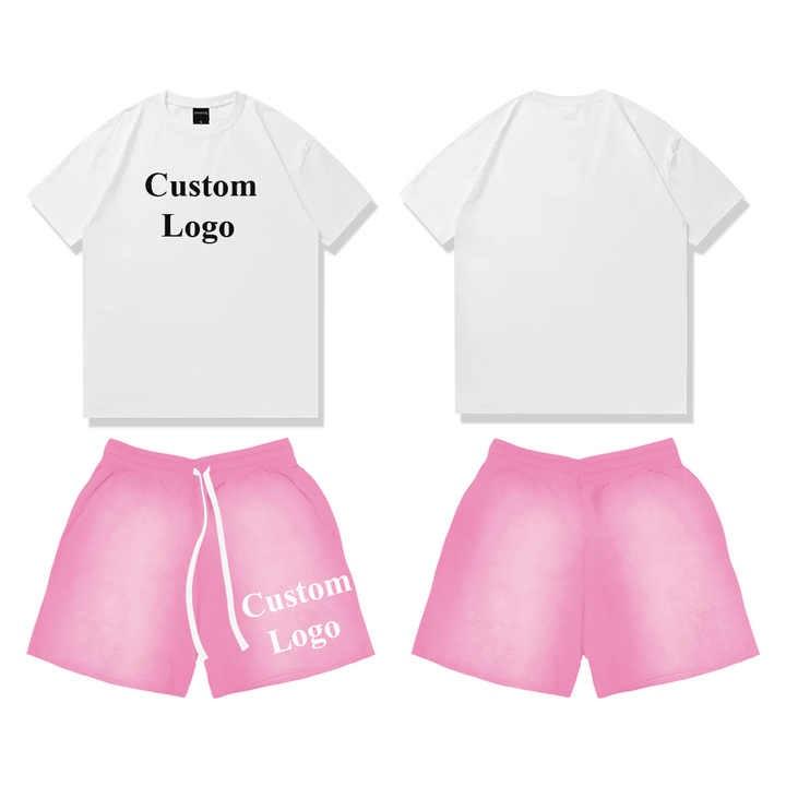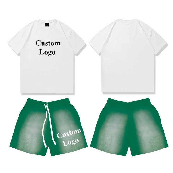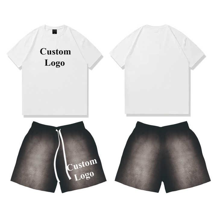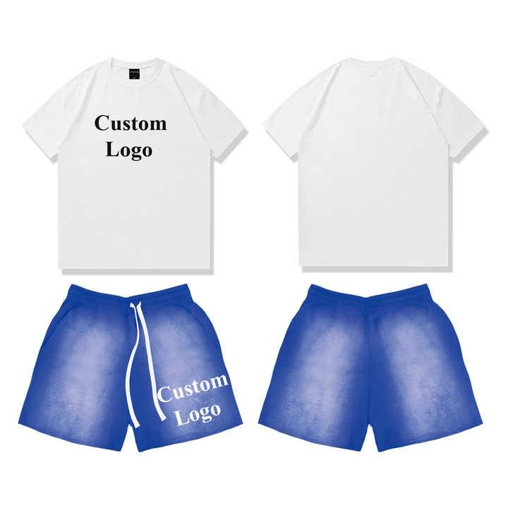 เซ็ตเสื้อยืดและกางเกงขาสั้นสำหรับผู้ชายชุดเสื้อผ้า2ชิ้น220Gsm พิมพ์ลายไซส์ใหญ่พิเศษพิมพ์ลายออกแบบได้ตามต้องการ