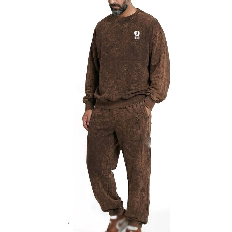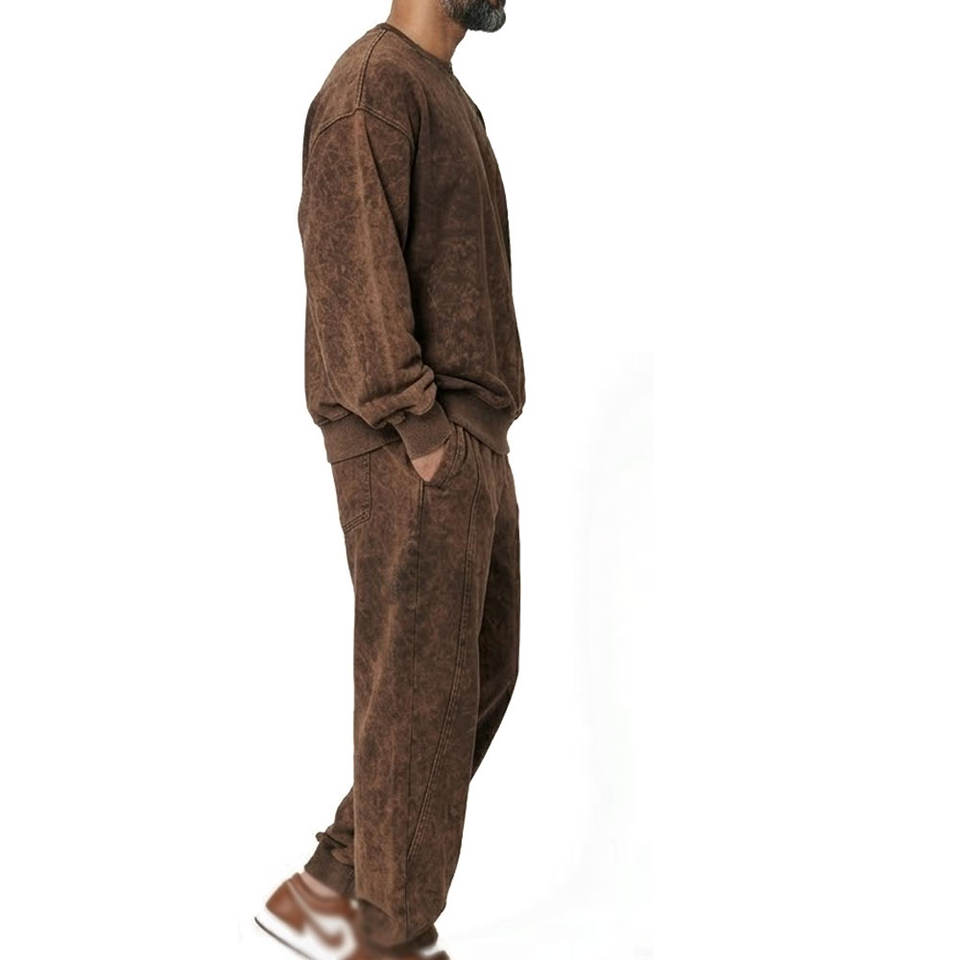 ชุดเสื้อสเวตเชิ้ตและกางเกงจ็อกเกอร์แบบย้อมสีเอซิดสำหรับผู้ชาย ชุดลำลองใส่สบายสำหรับออกกำลังกาย ชุดลำลองสำหรับใส่ในชีวิตประจำวันและสไตล์สตรีทแวร์