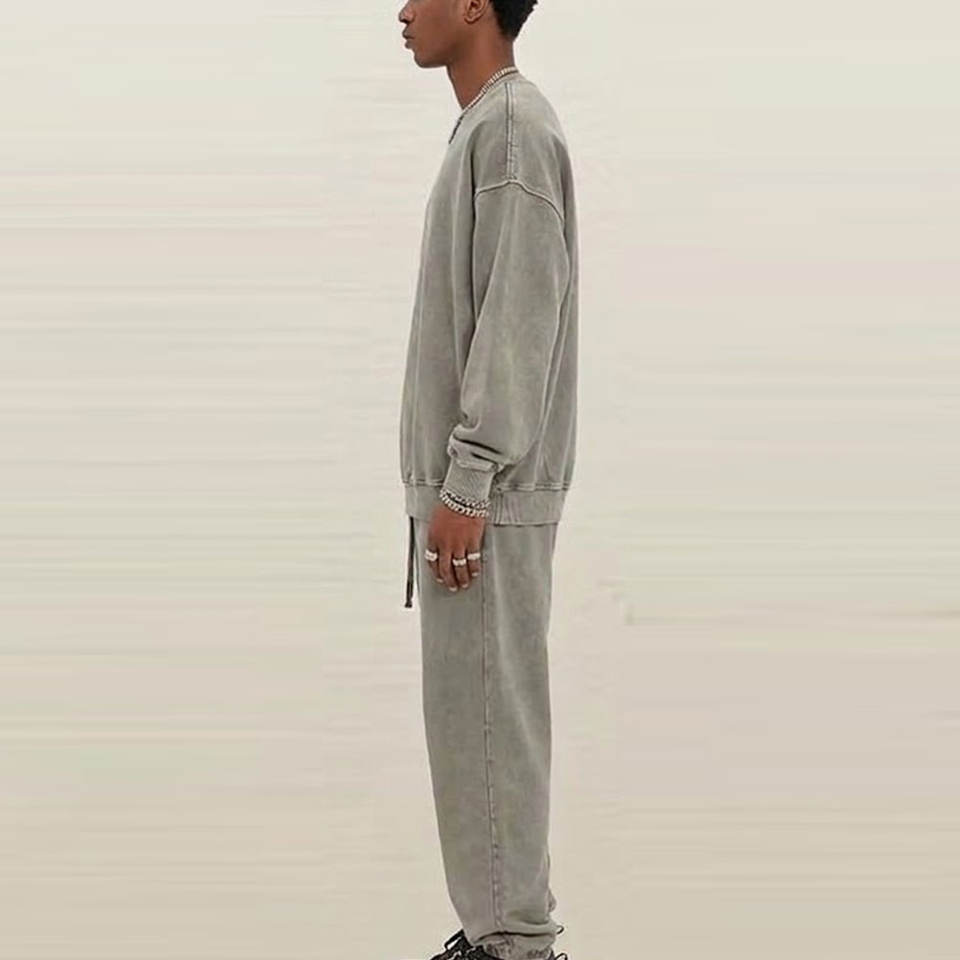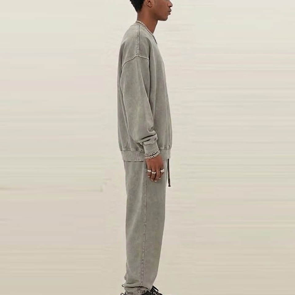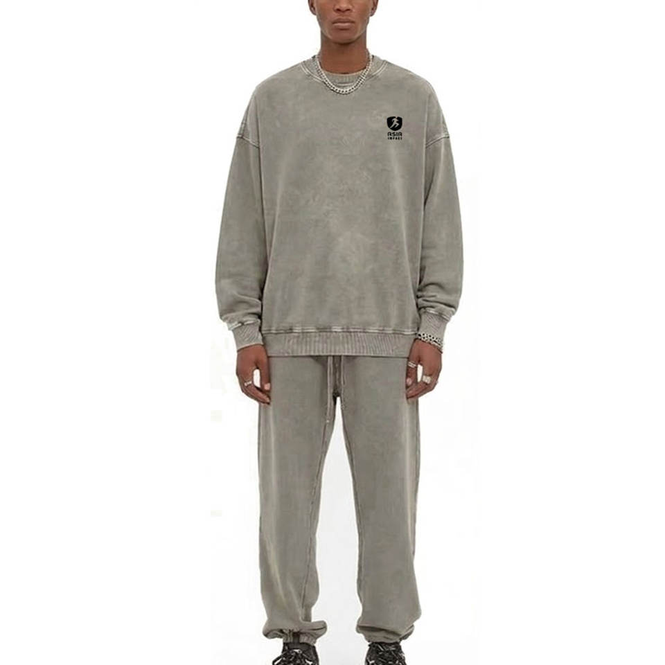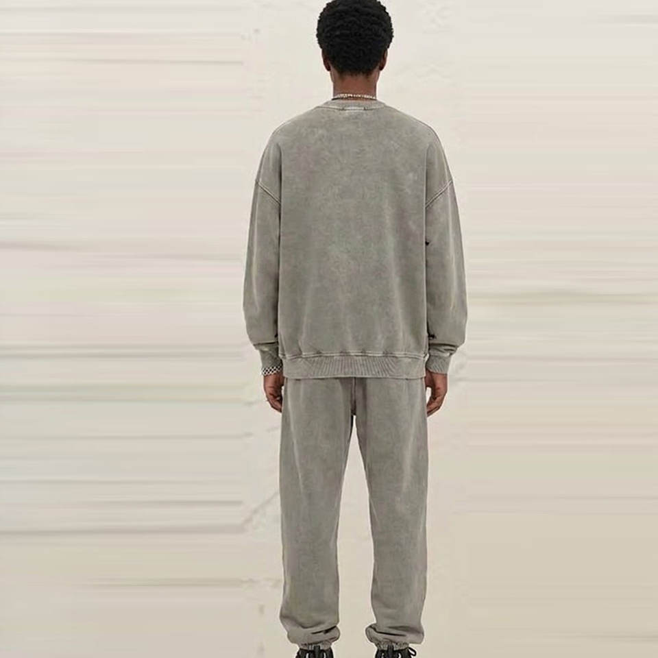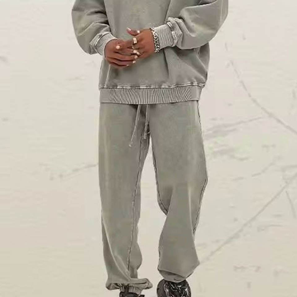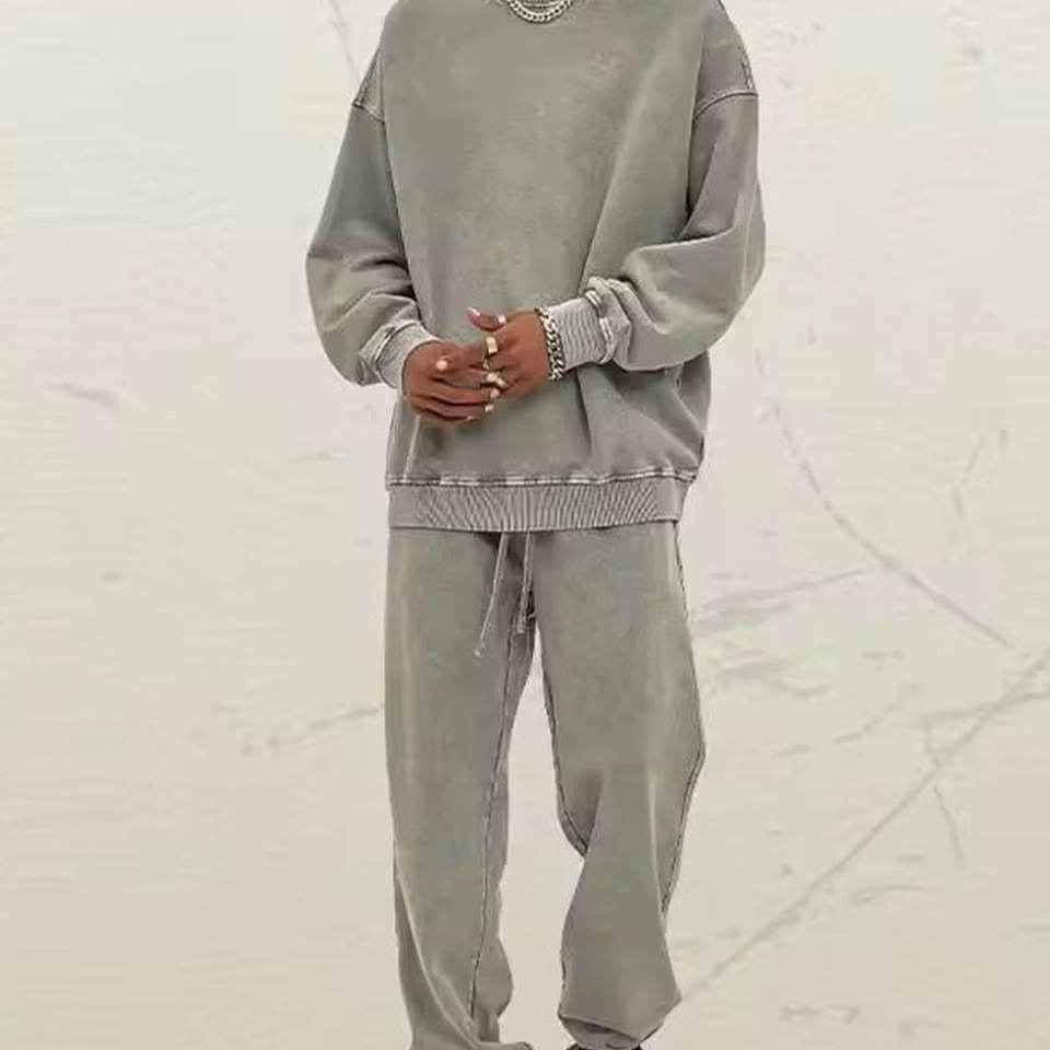 ชุดวอร์มแบบย้อมสีเอซิดสำหรับผู้ชาย พร้อมเสื้อสเวตเชิ้ตและกางเกงจ็อกเกอร์ ดีไซน์ทันสมัยและสวมใส่สบาย เหมาะสำหรับสตรีทแวร์ ลำลอง และออกกำลังกาย