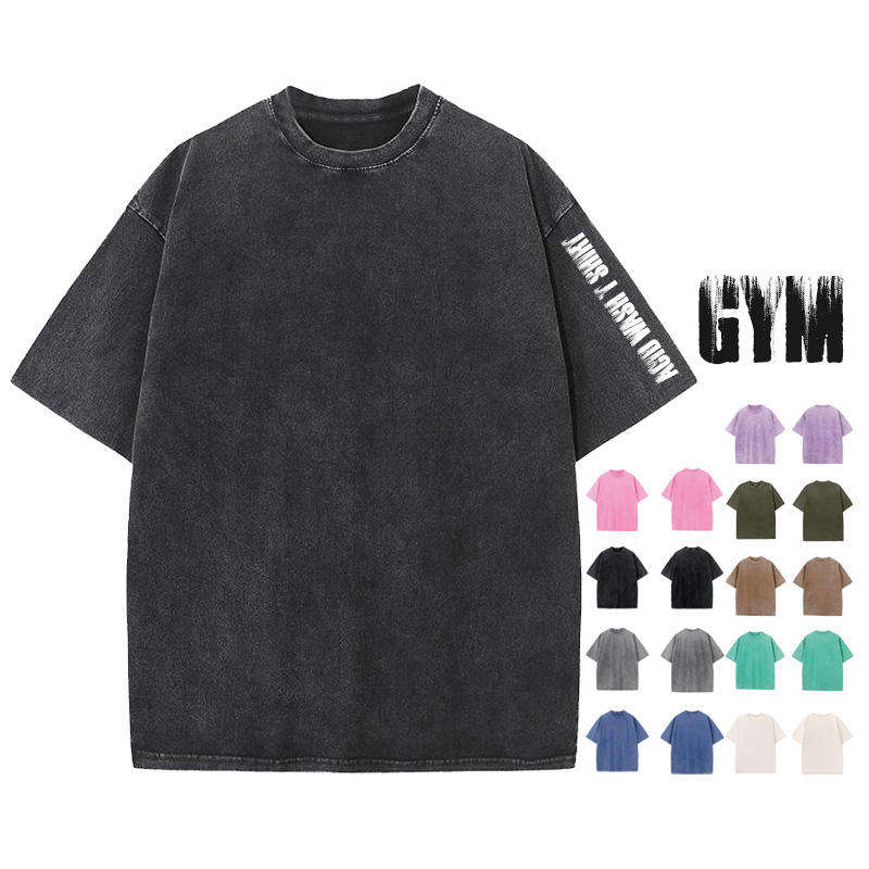 เสื้อยืดลายวินเทจทรงโอเวอร์ไซส์ 9 สี สำหรับออกกำลังกาย พิมพ์ลายด้วยเทคนิค DTG คุณภาพสูง รับสั่งทำ