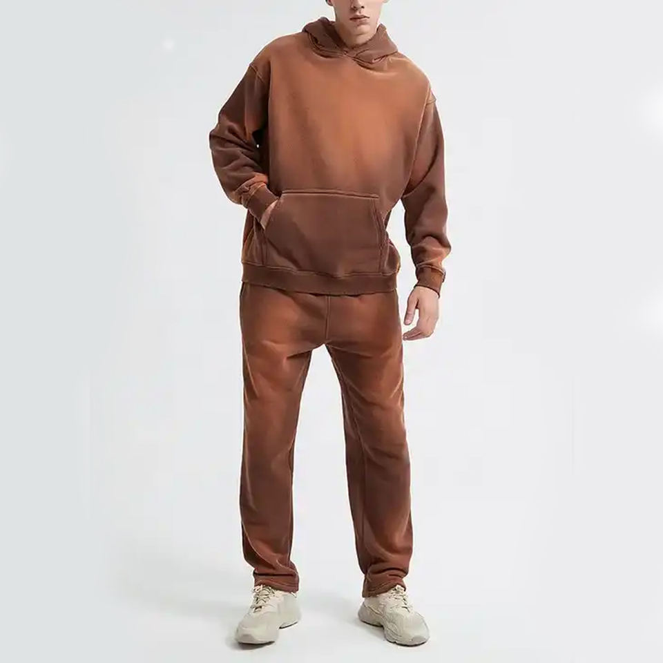 ชุดวอร์มและกางเกงซักด้วยน้ำกรดสำหรับผู้ใหญ่ใช้ได้ทั้งชายและหญิงเทคนิคการปะติดและพิมพ์ลาย
