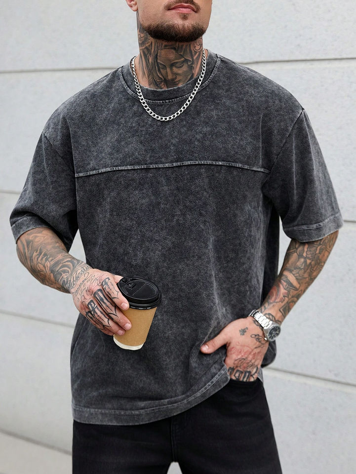 เสื้อยืดวินเทจผู้ชายแบบย้อมสีเอซิด ผ้าฝ้ายเนื้อนุ่ม ทรงหลวม ใส่สบาย เหมาะสำหรับใส่เที่ยวแบบลำลอง พร้อมปรับแต่งได้เต็มที่