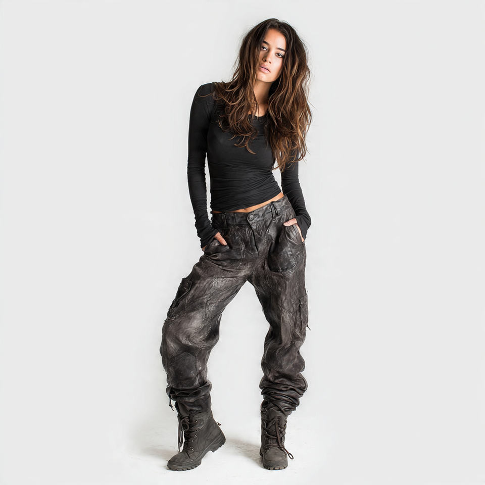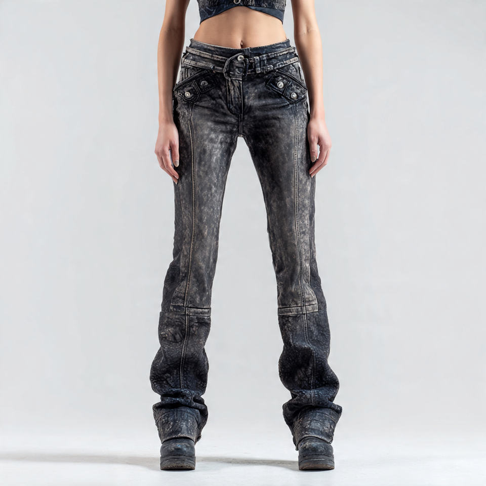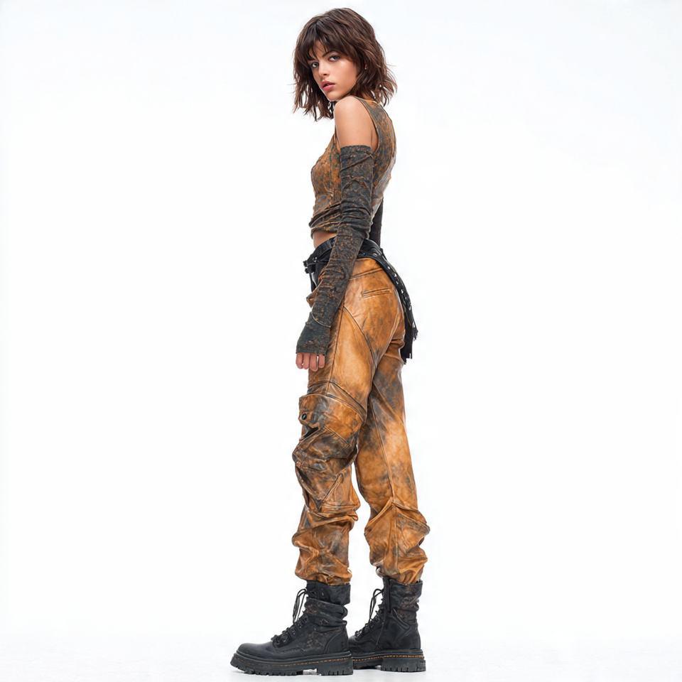 Product name:Washed Leather Pants Women