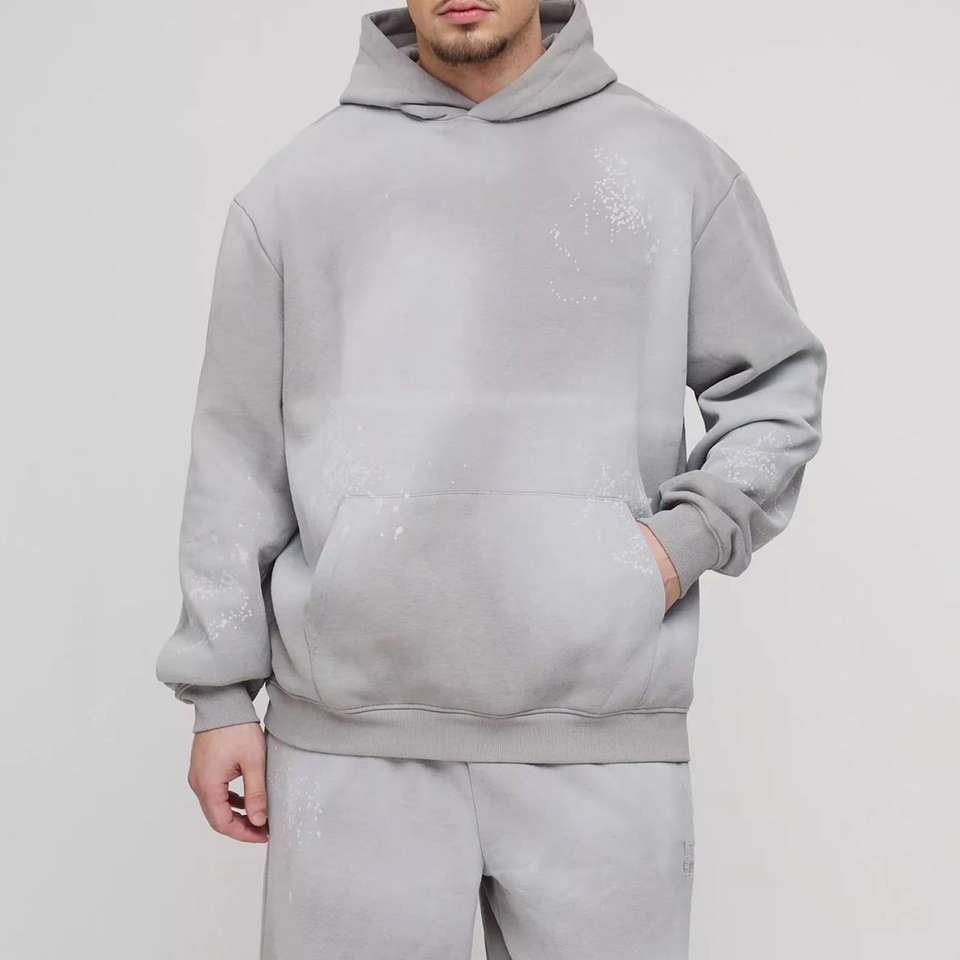 ชุดวอร์มปักลายสไตล์ดิสเทรสแบบย้อมสีเอซิด ผ้าฝ้าย 100% รับทำโลโก้ ชุดฤดูหนาวสำหรับผู้ชาย สไตล์สตรีทแฟชั่น กางเกงขายาวทรงสแต็ค