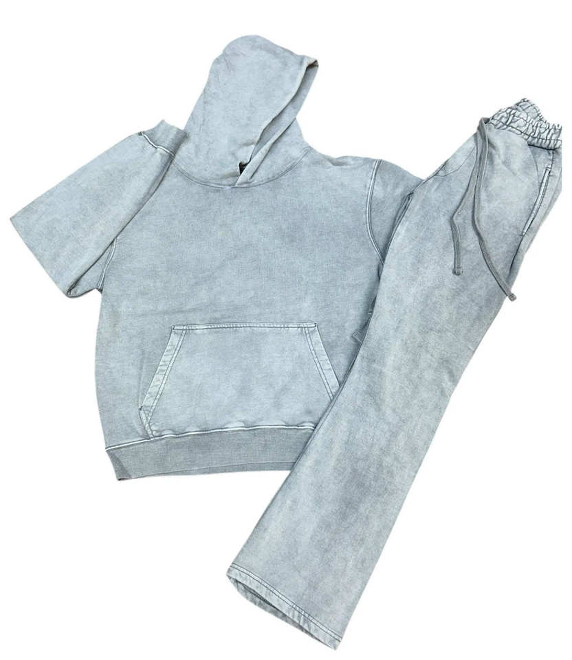 ชุดวอร์มผู้หญิงลายกรดซักเสื้อผ้าแนวสตรีทเสื้อมีฮู้ดผ้าเทอร์รี่ปักลายแนววินเทจมีสไตล์สตรีท