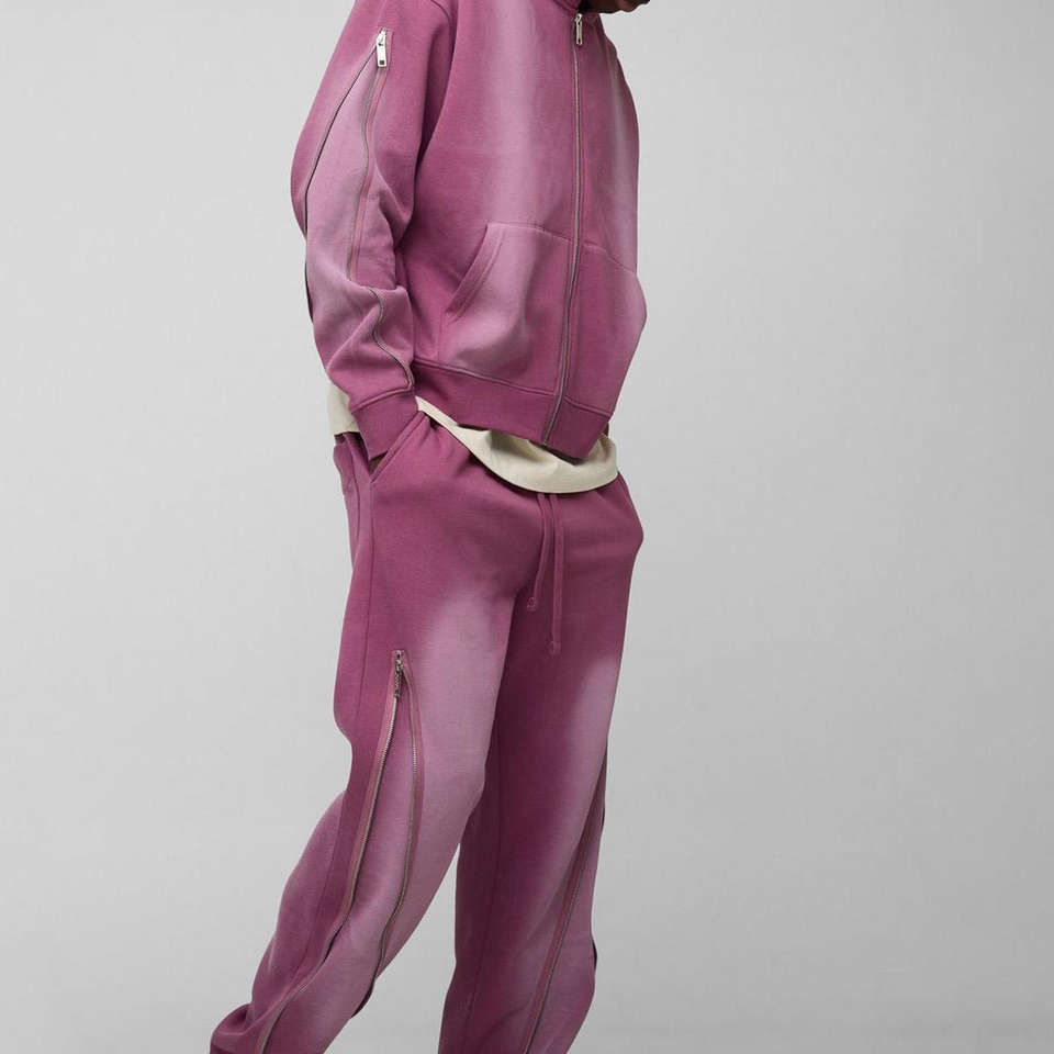 ชุดเซ็ตเสื้อฮู้ดซิปและกางเกงวอร์มลายฟอกสี สไตล์ลำลอง ทรงปกติ เสื้อฮู้ดและกางเกงจ็อกเกอร์ ชุดวอร์มคุณภาพสูงสำหรับฤดูใบไม้ร่วง ชุดวอร์ม 2 ชิ้น