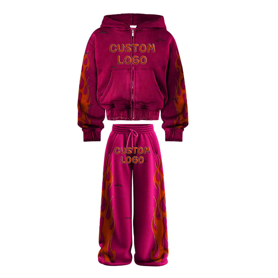 ชุดเซ็ตเสื้อฮู้ดดี้และกางเกงวอร์มขาบานทรงลำลองสไตล์ดิสเทรส ลวดลายฟอกสี พร้อมตกแต่งด้วยคริสตัล ผ้าฟลีซ เหมาะสำหรับออกกำลังกาย ฤดูหนาว 2025