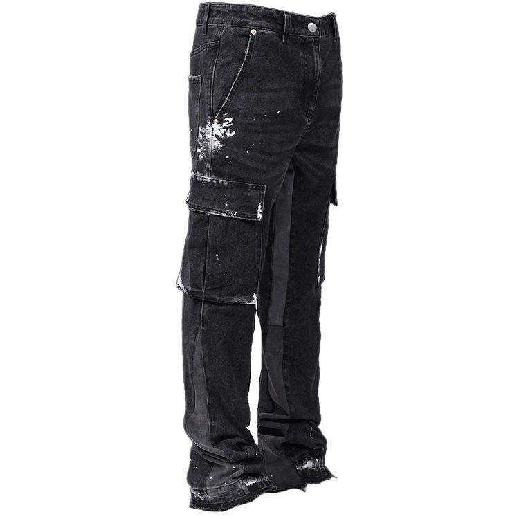 Acid Washed Double Knee Men's Jeans Relaxed Fit Distressed Streetwear Loose Fit Baggy Wide Leg Eco-Friendly Winter Stonewashed