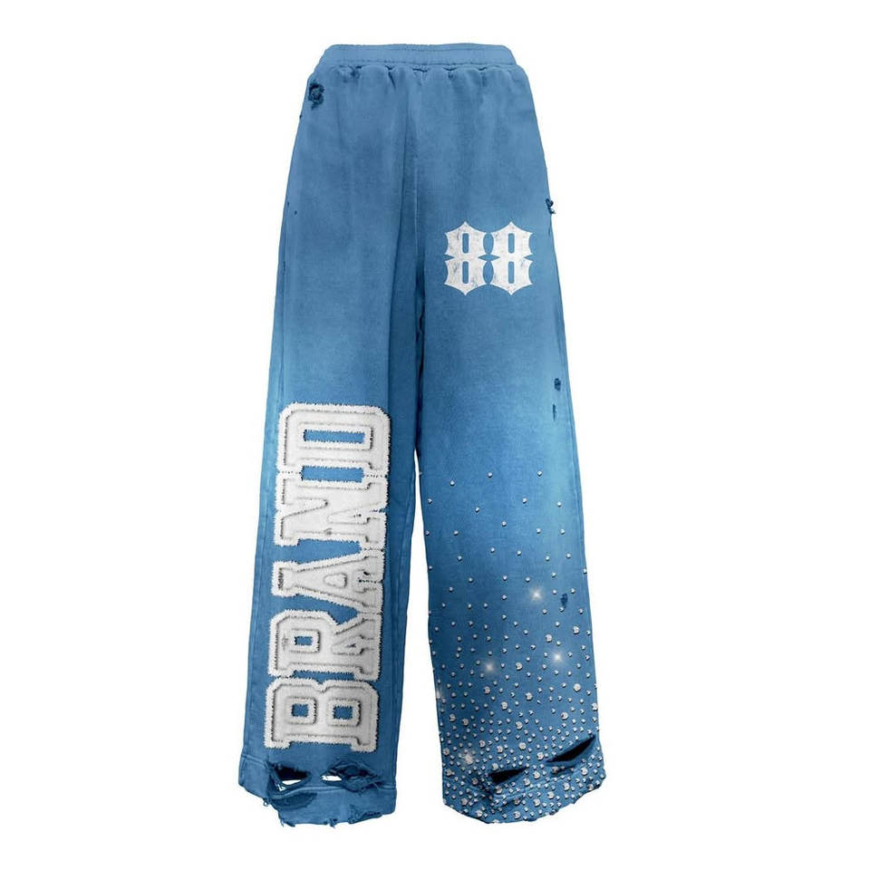 ชุดวอร์มพิมพ์ลายแบบฟอกสี สำหรับทุกเพศ ทรงขาบาน เสื้อผ้าสั่งทำ พิมพ์ลายสกรีน สไตล์ดิสเทรส ผ้า 400GSM