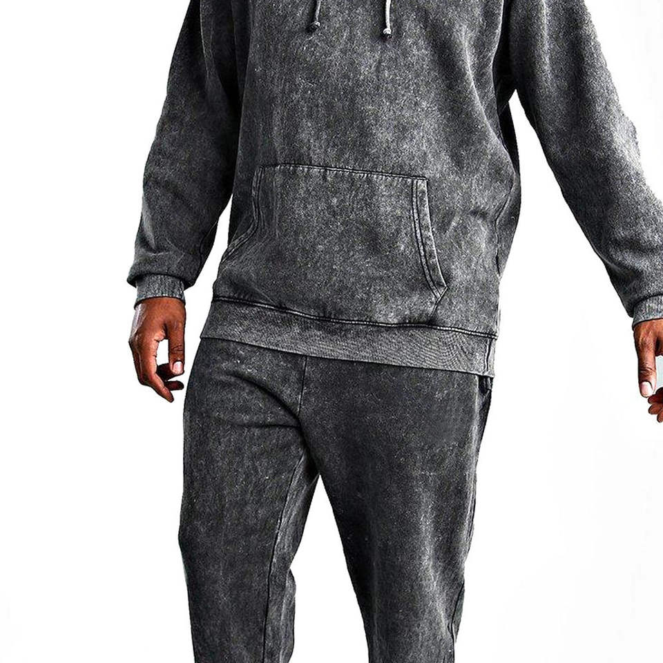 ชุดวอร์มพิมพ์ลายสะท้อนแสงแบบย้อมสีเอซิด ผ้าคอตตอนเทอร์รี่ 100% ทรงโอเวอร์ไซส์สำหรับผู้ชาย กางเกงวอร์มขาบานทรงสแต็ค ชุดฮู้ดดี้