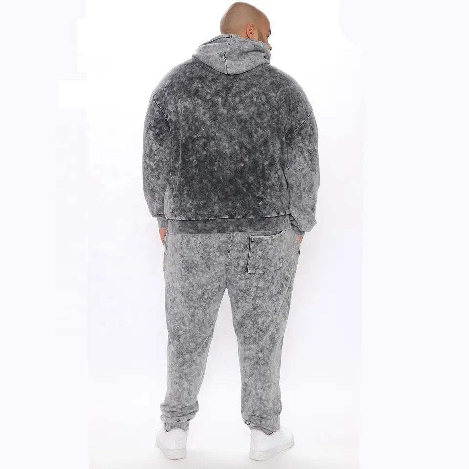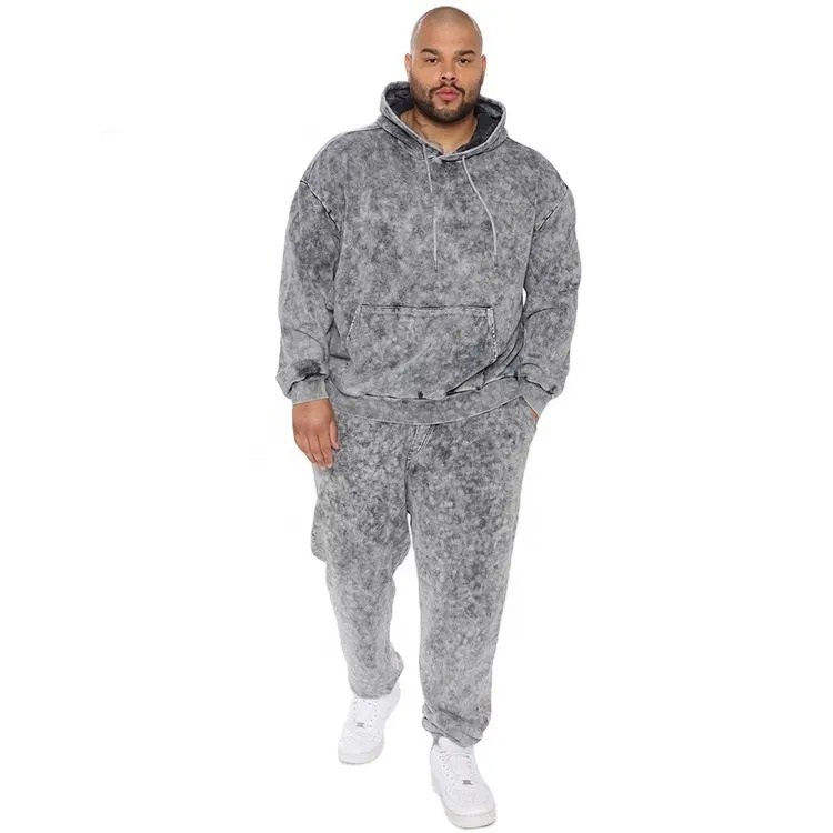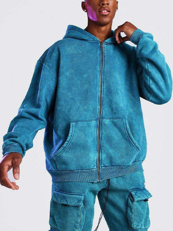 ชุดวอร์มแบบย้อมสีเอซิดสำหรับผู้ชาย เสื้อฮู้ดครอปทรงบ็อกซี่แบบมีซิป กางเกงขายาว ชุดสตรีทแวร์ ลายพิมพ์ DTG เสื้อฮู้ดมีซิปและกางเกง