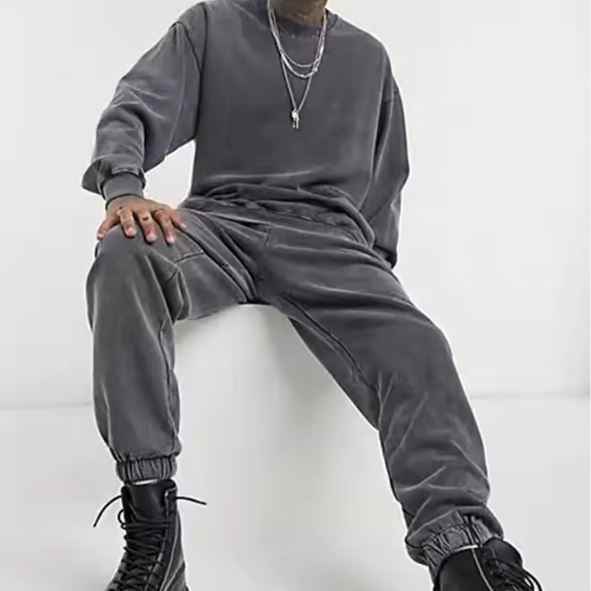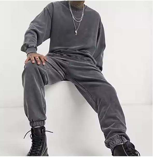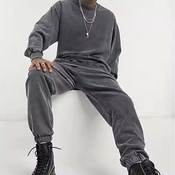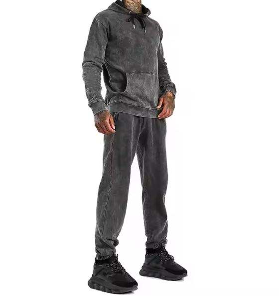 ชุดวอร์มล้างด้วยกรดสำหรับผู้ชายชุดซักหินแฟชั่นปักโลโก้ได้ตามต้องการ