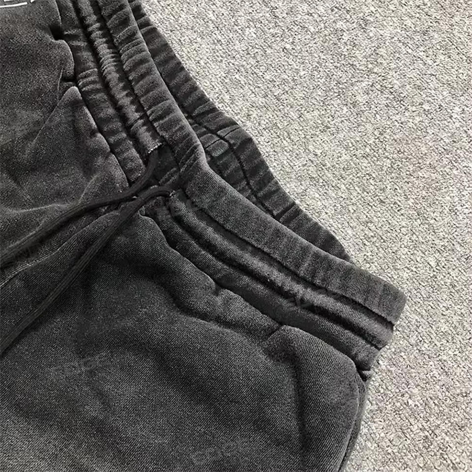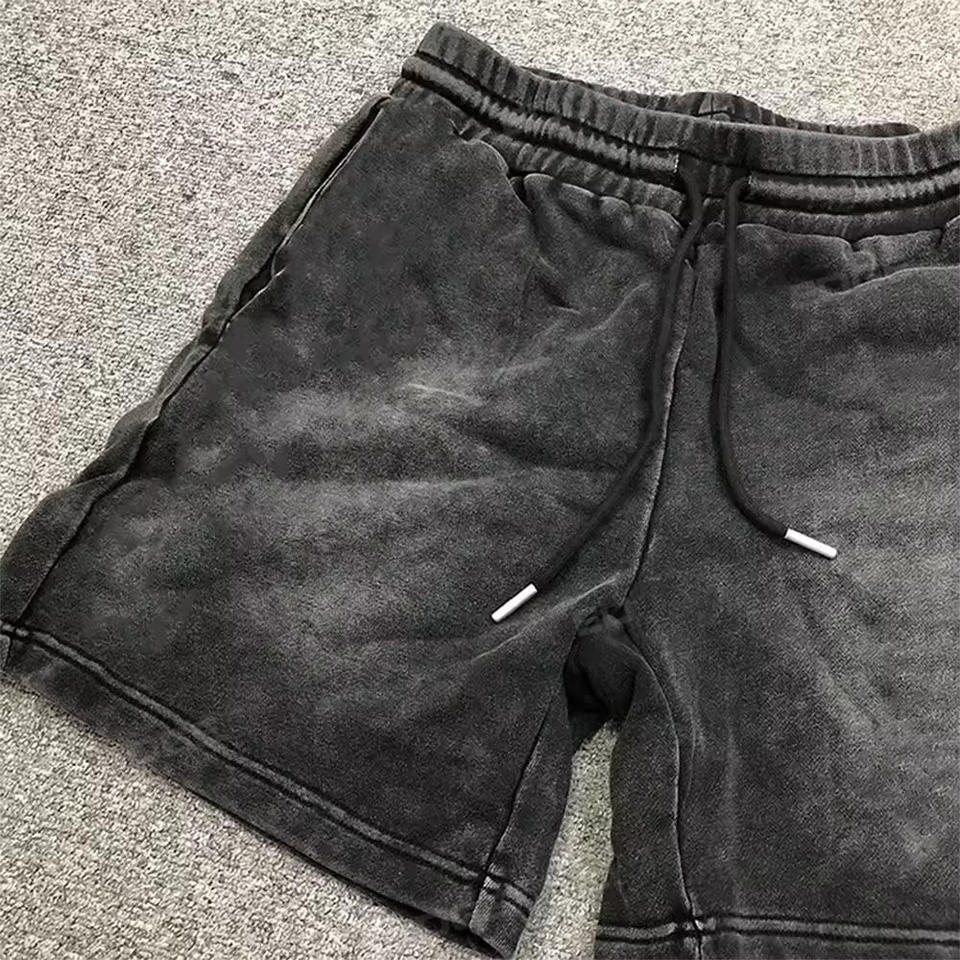 กางเกงขาสั้นผ้ายืดเอวสูงสำหรับผู้ชายกางเกงขาสั้นผ้ายืดเอวสูงฟอกสีฤดูร้อน