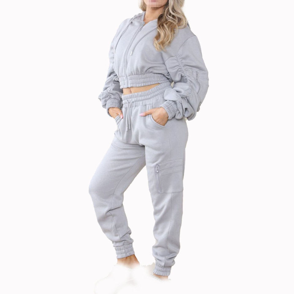 ชุดเซ็ต 2 ชิ้น แบรนด์ Acid Wsheed แบบมีซิป แขนยาว เสื้อครอปเอวสูงเข้าชุด สำหรับผู้หญิง สไตล์ลำลอง เหมาะสำหรับออกกำลังกายในฤดูใบไม้ร่วง