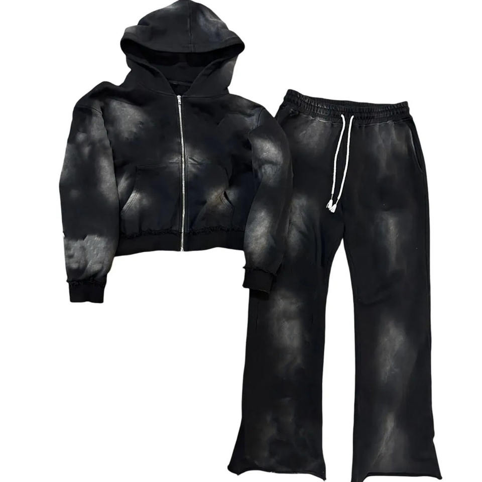 เสื้อฮู้ดทรงสี่ตัวมีซิปของผู้ชายชุด2ชิ้นเสื้อฮู้ด320gsm โอเวอร์ไซส์