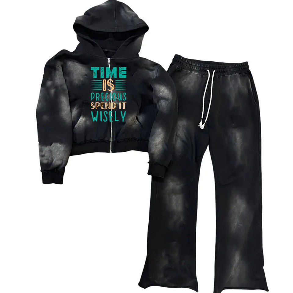 Acid wash Custom High Quality Men's Hooded 2 Piece Set Blank Oversized Quad Hoodie 320gsm Men's Street Zipper Hoodie 2025
